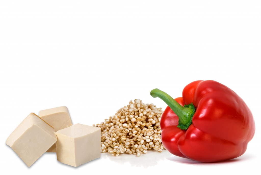 Quinoa Stuffed Pepper with Stir-Fry Vegetables and Fried Tofu